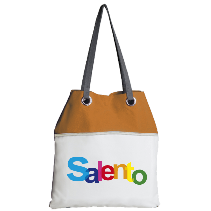 La borsa può essere personalizzata, anche come singolo pezzo, utilizzando una propria grafica, o una delle grafiche apparteneneti alla nostra collezione SALENTO DONNA.