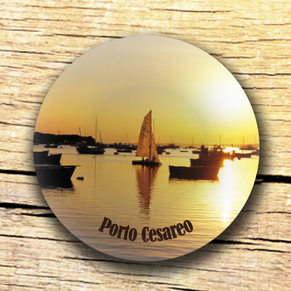 Magnete a forma di piattino con immagine di un fantastico tramonto nel mare di Porto Cesareo