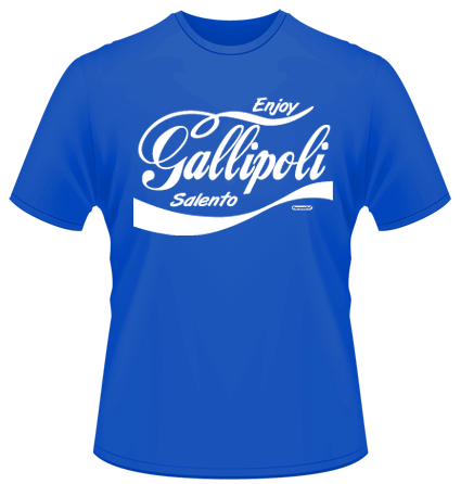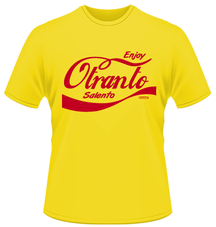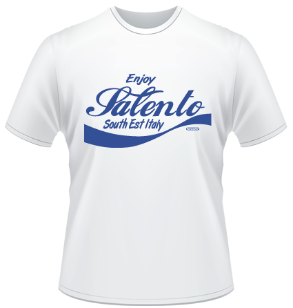 T-shirt salentina che richiama la pubblicità di un noto marchio internazionale. Disponibile per le diverse località.