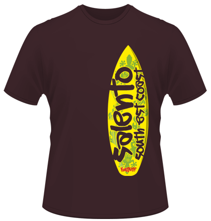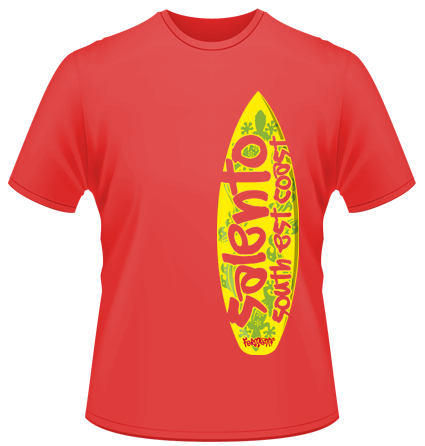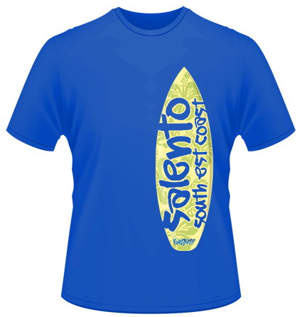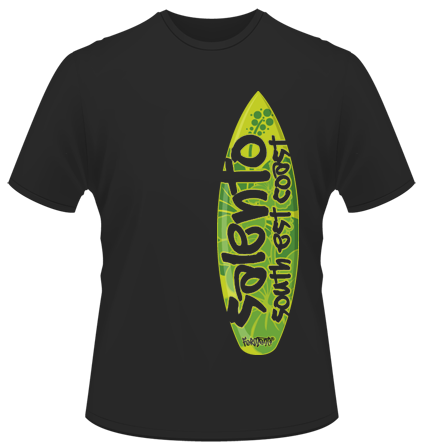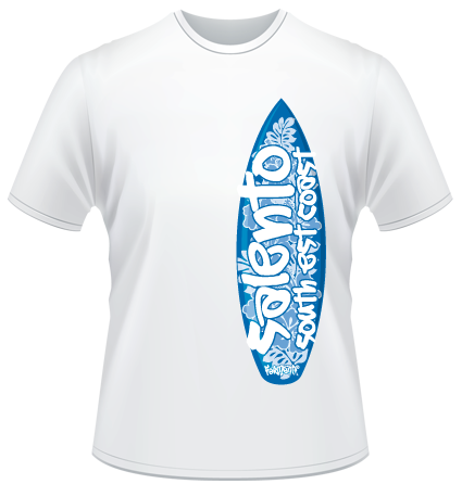 T-shirt salentina dedicata ai surfer che praticano il loro sport preferito lungo tutte le coste del litorale salentino.
