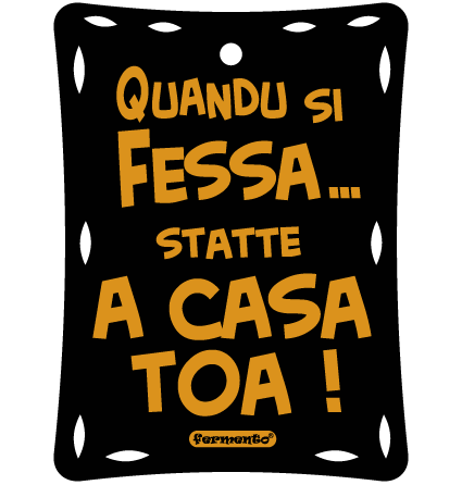 Tavoletta in cuoio rigenerato con frase salentina QUANDU SI FESSA STATTE A CASA TOA (quando sei stupido statti a casa tua)